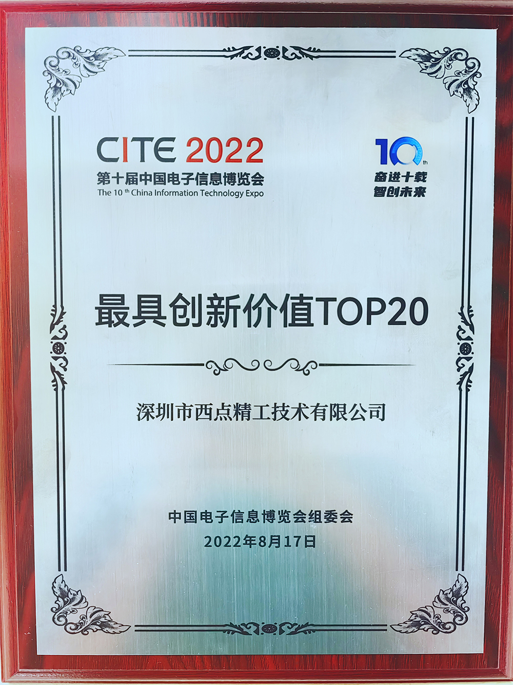 8月16日,第十届中国电子信息博览会(CITE 2022)在深圳盛大开幕。深圳市人民政府副市长张华,广东省工业和信息化厅党组成员、副厅长曲晓杰,工业和信息化部电子信息司副司长史惠康出席开幕式并先后致辞。中国电子信息产业集团有限公司党组书记、董事长芮晓武出席开幕式。在本届中国电子信息博览会17日下午的全国“专精特新”专场中,深圳市西点精工技术有限公司荣获“[敏感词]创新价值TOP20”。